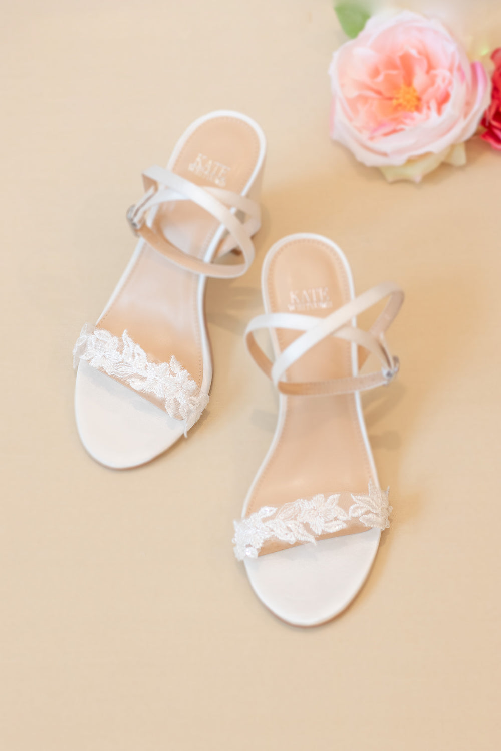 - Amazing lace wedding shoes with block heels are perfect for your special day. These gorgeous ivory lace wedding heels are chic, modern, pretty and feminine! Classic ivory heels and the lace details are a beautiful touch. These are the perfect pair of bridal shoes.